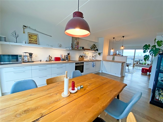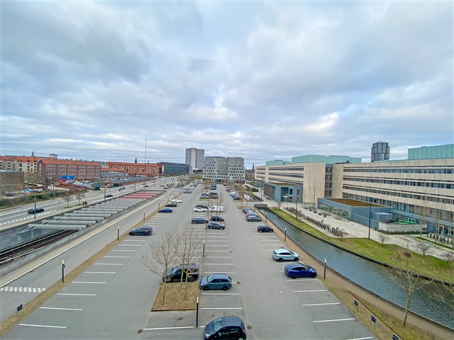 Denne møblerede 3-værelses lejlighed står til rådighed med indflytning fra den 1. marts 2026 og kan lejes i en periode på 2 til 4 år. Den er placeret på fjerde sal i en bygning med elevator, hvilket sikrer en god mængde dagslys samt en attraktiv udsigt ud over det omkringliggende område.Lejligheden byder på en rummelig entré med plads til opbevaring af overtøj, et badeværelse med brus samt vaskemuligheder. Der findes et værelse med indbyggede skabe, ligesom det store køkken-alrum og stue er udformet som ét samlet rum, der får lys fra både øst- og vestvendte vinduer. Fra stuen er der adgang til en stor altan. Hertil kommer et væsentligt soveværelse med en væg fyldt med skabe til opbevaring. En kælderrum hører til lejligheden, og der er mulighed for at leje en parkeringsplads i kælderen.
