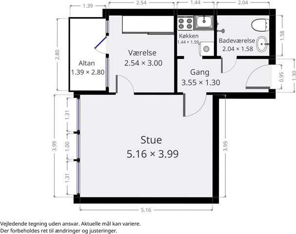Vær opmærksom på, at de viste billeder stammer fra en tilsvarende lejlighed og udelukkende tjener som en vejledning.