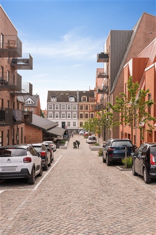 Der er mulighed for at leje parkeringsplads i nærheden af lejligheden, enten på gaden eller i en parkeringskælder. Prisen for en parkeringsplads på terræn er 950 kr. om måneden, mens en plads i parkeringskælderen koster 1.150 kr. pr. måned. For el-bilsejere findes et begrænset antal parkeringspladser med el-stik til 1.350 kr. pr. måned.