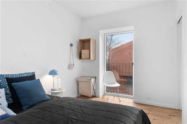 Denne lejlighed rummer fire værelser og byder på hele to altaner med en dejlig udsigt. Entréen er rummelig og tilbyder god opbevaringsplads til sko og overtøj. Fra denne åbner et stort, åbent køkken-alrum sig, hvor både spisebord og sofa let kan indrettes. Der er tre velindrettede værelser samt et stort badeværelse. Boligen har adgang til ikke mindre end to altaner.Gulvbelægningen består af smukke egetræsgulve, som bidrager til en varm og indbydende stemning i lejligheden og samtidig tilfører et eksklusivt præg. Denne bolig egner sig perfekt til den, der vægter kvalitetsmaterialer og et tidløst design højt.