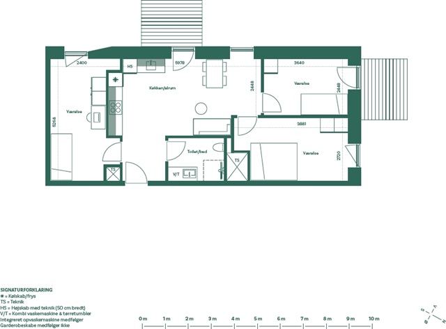 Bemærk venligst, at billederne stammer fra en tilsvarende bolig, men plantegningen er korrekt gengivet.