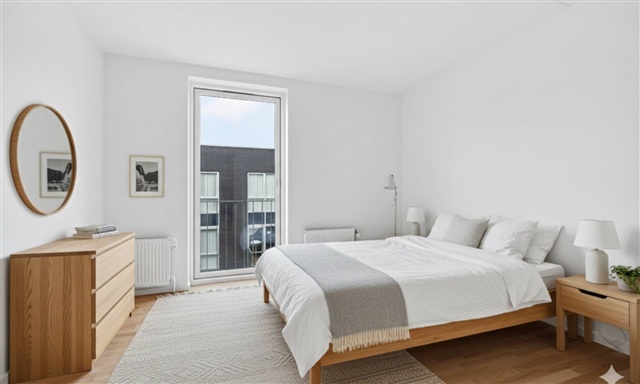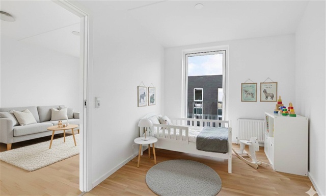 Denne lejlighed er indrettet med en meget moderne arkitektur og har store vinduespartier, der sikrer et godt lysindfald. Køkkenet er udført i et stilrent hvidt design med en køkkenø, som åbner op mod stuen, hvor der er flere muligheder for indretning. Fra stuen er der desuden udgang til en rummelig altan. Boligen rummer tre veludnyttede og lyse soveværelser samt et stort badeværelse, som byder på en separat bruseniche med glasvæg, en kombimaskine og god opbevaringsplads.Lejligheden ligger i Spinderiet, der er en særdeles attraktiv del af Valby. Herfra er der under to minutters gang til Valby Station, hvorfra man har nem adgang til hele landet via offentlig transport. Valby Langgades handelsstrøg med specialbutikker, caféer, lækre restauranter og take-away-muligheder ligger også lige om hjørnet, og i nærområdet findes desuden indkøbsmuligheder samt attraktive grønne områder som Frederiksberg Have, Søndermarken, indre by og Vesterbro, der alle er tæt på.