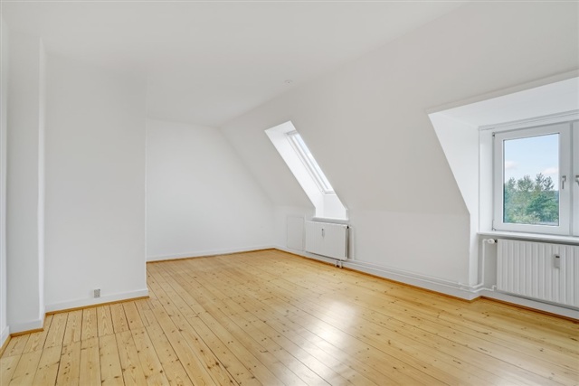 Lys 3-værelses taglejlighed med charmerende plankegulve og godt lysindfald – tæt på indkøb og bus