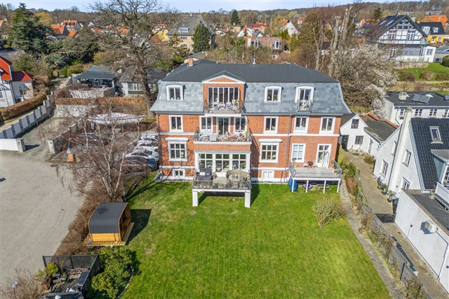 Forestil dig en bolig med en uforstyrret panoramaudsigt over havet, hvor lyden af bølger og den friske havluft bliver en naturlig del af hverdagen. Denne herskabslejlighed, opført i 1895, byder på en usædvanlig placering med en pragtfuld udsigt over Øresund og mod Sverige, der er svær at overgå. Med sine 169 kvadratmeter, der er udnyttet optimalt, fremstår boligen med smagfulde og velholdte rum i særklasse.Blot 80 meter fra boligens hovedentre ligger vandet, hvor det er muligt at tage et forfriskende bad året rundt - uanset om det er vinterbadning eller solrige sommerdage ved stranden. Samtidig er der kort afstand til indkøbsmuligheder, offentlige transportforbindelser og skole, mens motorvejsnettet er let tilgængeligt for pendleren.