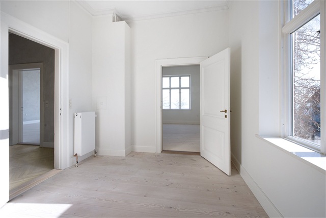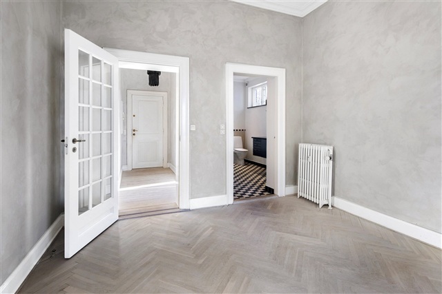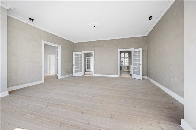 Udlejer har mulighed for at fjerne det nuværende badekar i badeværelset og installere en vaskesøjle. Derudover kan døren mellem badeværelset og det tilstødende værelse, der i dag har separat adgang fra opgangen, fjernes. Denne ændring vil integrere værelset fuldt ud i lejligheden, så det samlede areal forøges til ca. 175 m², hvilket giver en bedre sammenhæng og øget funktionalitet.