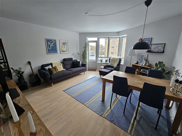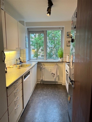 Lejligheden består af to værelser og har gennemgået en modernisering med et helt nyt køkken og et renoveret badeværelse. Den rummelige og lyse stue har udgang til en dejlig altan, og der er et stort soveværelse med gode pladsforhold. Køkkenet, som er separat, er installeret med opvaskemaskine, køle- og fryseskab, kogeplade, indbygget ovn samt emhætte, og fremstår flot og funktionelt. I entréen er der indbyggede skabe, som bidrager med praktisk opbevaringsplads. Badeværelset er indrettet med en bruseniche, der sikrer funktionalitet. Bemærk at billederne stammer fra en lignende lejlighed i ejendommen, hvor køkkenet endnu ikke er moderniseret.Under ejendommen findes et fælles vaskerum, som benytter et moderne bookingsystem via app. Herudover er der faciliteter til cykelparkering og ekstra opbevaring. Ejendommens gårdmiljø er grønt og inviterer til fælles brug. Boligen er placeret i et grønligt område tæt på Aarhus Universitet samt med nem adgang til indkøb. Transportmulighederne er gode, idet både letbanen og busser kører lige i nærheden.