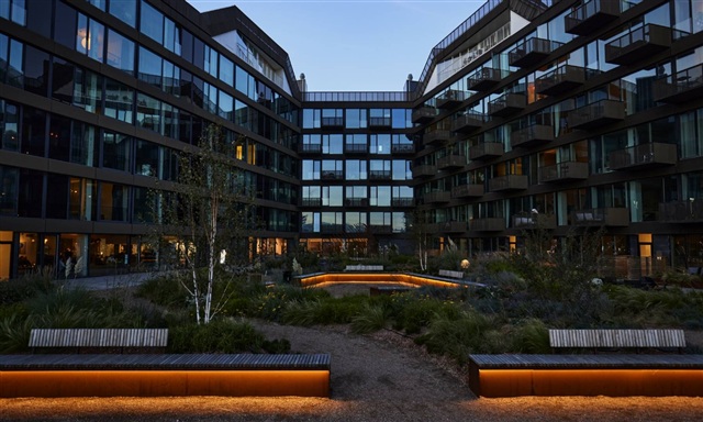 Ejendommen stammer fra 1960 og har gennemgået en ombygning i 2010, hvor der blev lagt vægt på at skabe lys, luft og et stærkt fællesskab blandt beboerne. Her er adgang til et hyggeligt gårdmiljø, flere tagterrasser med panoramaudsigt over både byen og vandet samt et fitnessrum, der er forbeholdt de boende. Derudover er der mulighed for at leje parkeringsplads i ejendommens kælder - en praktisk løsning for bilejere.