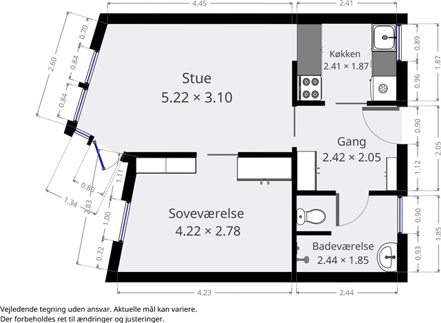 Bemærk venligst, at billeder og plantegning alene er vejledende og ikke nødvendigvis nøjagtige for denne bolig. Aconto-betalingen omfatter kun spildevand, mens el, vand, varme samt eventuelt internet og TV afregnes direkte med leverandørerne.