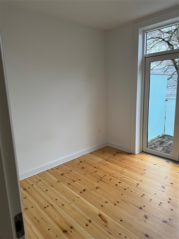 Denne lejlighed byder på god plads og inkluderer en altan. Det moderniserede køkken fremstår stilrent og fuldt udstyret med alle nødvendige hvidevarer, mens badeværelset er indrettet med en lækker finish. Boligen rummer desuden en stue samt to rummelige værelser.Stuen fungerer som gennemgangsrum, hvilket gør det muligt for to personer at dele lejligheden, men den egner sig naturligvis også godt til par eller familier. Der er desuden adgang til en fælles gårdhave, hvor beboerne kan opholde sig. Alt i alt et praktisk og velindrettet hjem med en ekstra udendørs plads i form af altanen.