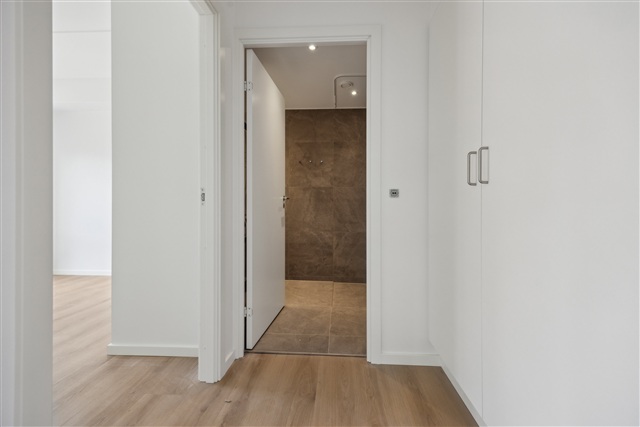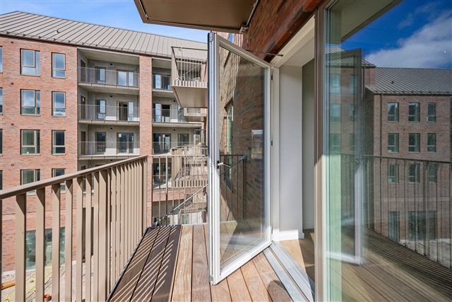 Denne lejlighed på 93 m² er placeret på anden sal i Teglgården, som indgår i det nye, grønne og urbane boligområde Stigsborg. Boligen fremstår både stilren og rummelig med en gennemført funktionel planløsning, der tilgodeser behovene hos såvel par som små familier eller personer, der ønsker ekstra plads i dagligdagen. Her finder du tre veludnyttede og lyse værelser, der tilsammen udgør de 93 m². Lejligheden har et godt lysindfald samt udsigt fra anden sal, der bidrager til en lys og behagelig atmosfære. Desuden er der en altan, som giver mulighed for at nyde udendørslivet og slappe af.Køkkenet er fra Invita og indeholder integrerede hvidevarer samt rigelig opbevaringsplads, mens badeværelset er udstyret med såvel vaskemaskine som tørretumbler for øget bekvemmelighed. Alle rum har gulvvarme, og under fødderne ligger trægulve fra Moland, som giver en varm og indbydende overflade. Til lejligheden hører også et depotrum, og hele opgangen er tilgængelig via elevator, hvilket øger komfort og tilgængelighed.
