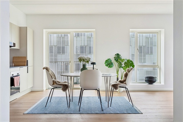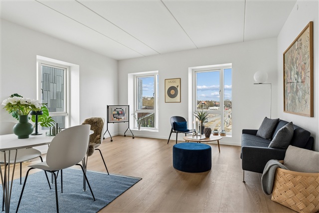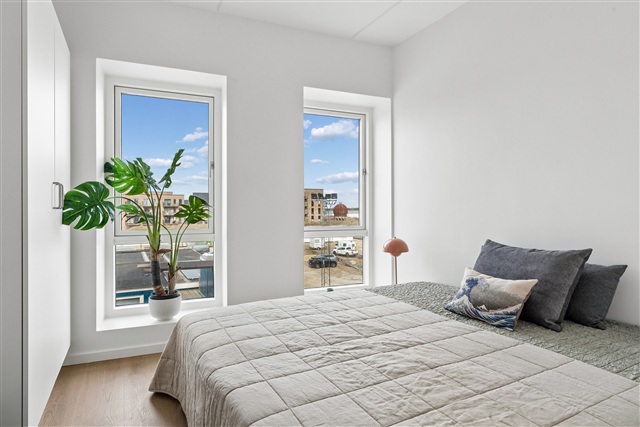 Denne lyse og moderne 3-værelses lejlighed spænder over 92 m² og ligger i det eftertragtede område Stigsborg, hvor byliv, natur og et aktivt fællesskab mødes i harmoni. Boligen henvender sig til jer, der søger en indflytningsklar bolig med både funktionalitet og æstetik i højsædet, og byder på en vestvendt altan, som inviterer til afslapning i aftensolens skær.Lejligheden rummer to store værelser samt et rummeligt køkken-alrum, der skaber en varm og indbydende atmosfære. Overalt i boligen findes gulvvarme suppleret med slidstærke gulve af mærket Moland. Køkkenet, der er af mærket Invita, er designet i et stilrent udtryk og udstyret med integrerede hvidevarer. Badeværelset fremstår lækkert og praktisk med en vaskesøjle, der gør dagligdagen lettere. Den vestvendte altan tilbyder et fredeligt uderum, mens der er elevator i opgangen og velindrettede, æstetiske fællesområder at benytte. Hertil kommer et praktisk depotrum integreret i lejligheden.
