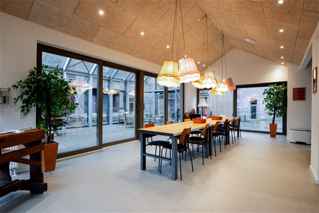 De fælles faciliteter omfatter grønne områder, der både inviterer til leg og ro, gode muligheder for cykelparkering samt direkte adgang til stisystemer. Området ligger tæt på fjorden og naturskønne landskaber, og der er desuden et fælleshus med et orangeri til rådighed.