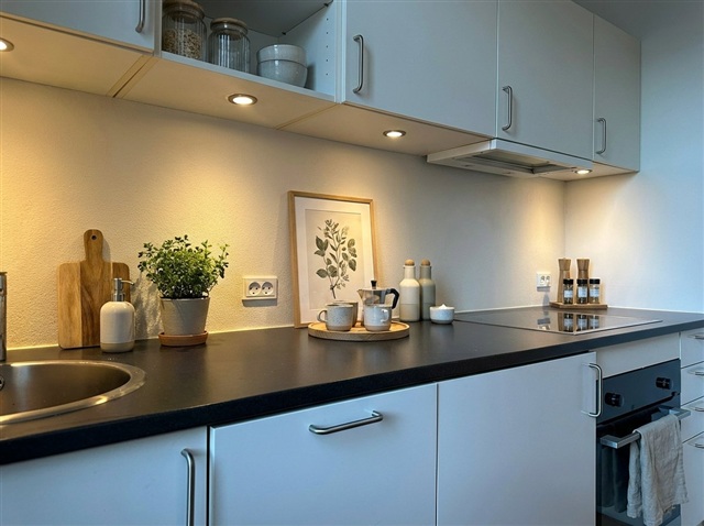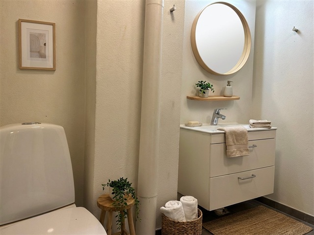 På trods af den centrale beliggenhed er lejligheden skjermet mod både trafikstøj og gadebelysning, hvilket sikrer en fredelig og privat atmosfære midt i byen. Til ejendommen hører også et hyggeligt gårdmiljø, hvor det er muligt at parkere cykler eller nyde solrige dage i afslappende omgivelser. Lejligheden ligger i et fredeligt kvarter tæt på både grønne områder og byens liv. En charmerende park ligger lige omkring hjørnet, ideel til afslapning eller samvær med venner, og havneområdet er ligeledes inden for gåafstand, hvor man kan tage en svømmetur i havnebadet eller beundre solnedgangen over fjorden.