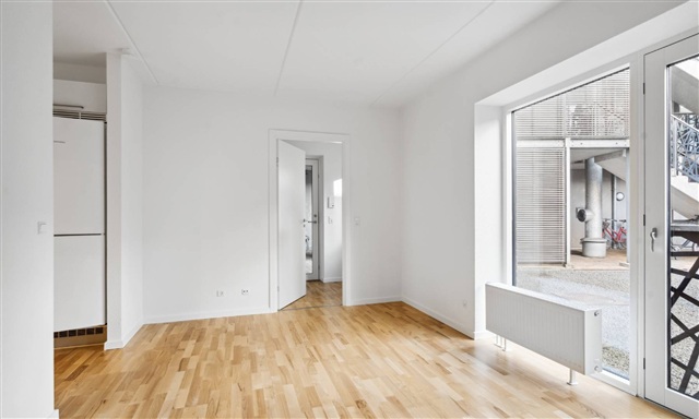 Denne moderne 2-værelses lejlighed byder på en kombination af stilfuldt design og praktiske løsninger, der sikrer komfort i hverdagen. Ved indgangen møder man en velindrettet entré, som giver plads til opbevaring af jakker og sko, hvilket bidrager til at holde hjemmet ryddeligt og overskueligt.Køkkenet udgør lejlighedens centrale rum med en åben forbindelse til soveværelset. Udstyret med avancerede hårde hvidevarer og et elegant udtryk, udgør det et funktionelt og æstetisk rum, hvor madlavning og samvær kan foregå i en lys og rummelig atmosfære med smarte opbevaringsmuligheder og glatte overflader. Badeværelset er designet med fokus på både funktion og ro, og indeholder en integreret vaskesøjle, der forenkler vasketøjsrutinerne. De moderne armaturer og det gennemførte, stilrene udtryk giver en luksuriøs følelse samtidig med, at det praktiske layout sikrer nem brug i dagligdagen.