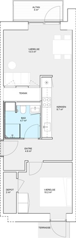 I Pionerhusene udbydes en lys og tidssvarende lejlighed til leje med indflytning fra den 1. marts 2026. Denne velplanlagte bolig indeholder et stort værelse med tilhørende depotrum, der kan anvendes som et walk-in-closet. Det åbne køkken og alrum har direkte adgang til en terrasse, mens badeværelset er udstyret med en vaskesøjle. Lejligheden er opført med moderne materialer, byder på god plads og en gennemtænkt indretning, hvilket gør den ideel for par, små familier eller personer, der ønsker lidt ekstra plads.Lejemålet ligger i et nyt og dynamisk kvarter med let adgang til både byens pulserende liv, natur samt offentlige transportmuligheder. Bemærk, at udlejning ikke er muligt ved gæld i RKI. De vedhæftede billeder stammer fra en tilsvarende bolig i samme ejendom.