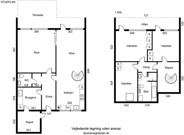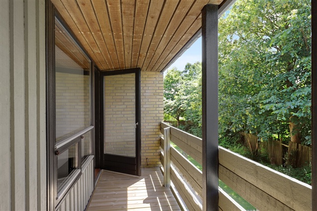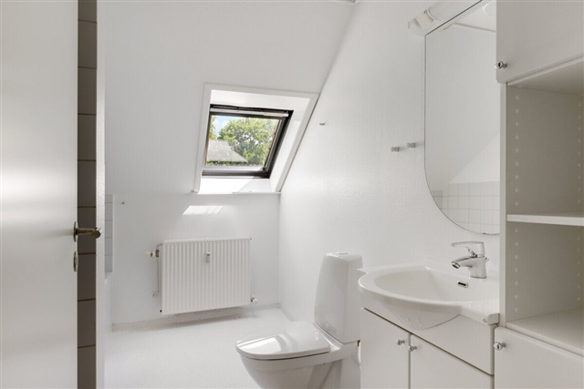 På førstesalen finder man tre værelser af god størrelse, hvoraf to, der vender ud mod haven, har adgang til en altan. Alle tre værelser har indbyggede skabe. Badeværelset er lyst og rummeligt og byder både på badekar og bruseniche.