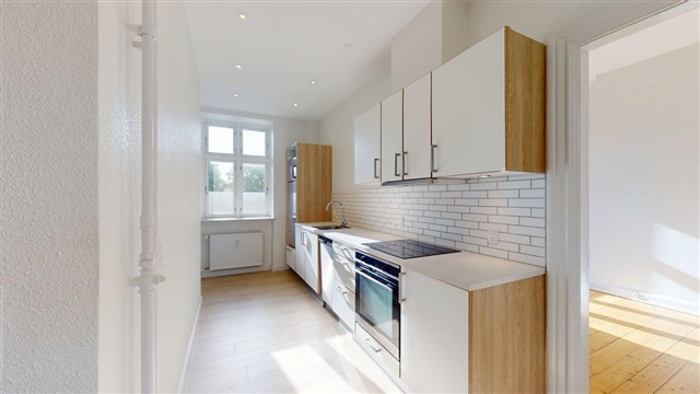 Leder du efter en studievenlig lejlighed i Aalborg, som ikke kræver utallige timer på boligsøgning? Her præsenteres en moderniseret lejlighed placeret på høj stueetage i det eftertragtede Aalborg Vestby med en effektiv og gennemtænkt indretning.Ejendommen ligger direkte overfor Frejas fodboldbaner og nyder godt af et dejligt vestvendt lysindfald. Køkkenet er opdateret og udstyret med et stort køle-fryseskab, en opvaskemaskine samt rigeligt med skabsplads til alt dit køkkenudstyr. Badeværelset fremstår lyst og nutidigt med en rummelig, separat brusekabine. Under vasken findes skabe til opbevaring af toiletartikler, og spejlet har integreret belysning, der sikrer god synlighed. Stuen er rummelig og giver mulighed for at indrette både et sofahjørne og spiseplads uden at gå på kompromis med pladsen. Det lyse værelse rummer plads til en dobbeltseng og et klædeskab, hvilket understreger lejlighedens funktionelle indretning.