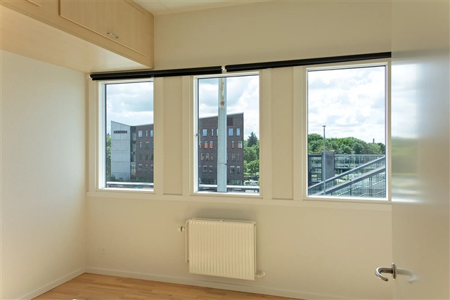 Denne 2-værelses lejlighed, som udelukkende udlejes til personer under 30 år, enten enkeltstående eller som par, er beliggende centralt i Herning med kort afstand til både station og bylivets tilbud. Boligen tilbyder en lys og åben planløsning, hvor køkken og stue er integreret i ét rum, hvilket skaber gode rammer for både afslapning og samvær.Det store soveværelse er udstyret med smart opbevaringsplads under loftet, og badeværelset er moderne med en rummelig indretning og bruseniche. Ejendommen indeholder fire fælles vaskerier, og beboerne har mulighed for at benytte en dejlig tagterrasse med udsigt over byen.