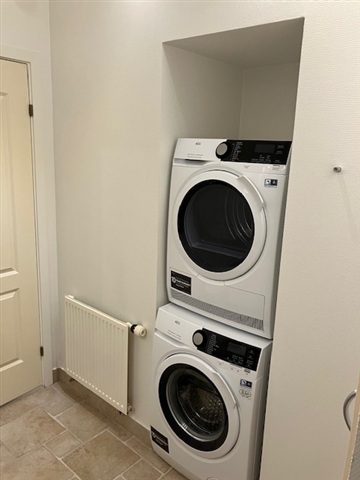 Lejligheden er udstyret med opvaskemaskine, vaskemaskine og tørretumbler, hvilket giver en praktisk og komfortabel hverdag.