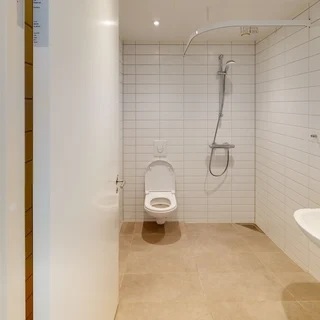 Boligen indeholder et veludstyret køkken med komfur, som er åbent mod det tilstødende alrum. Der er et stort badeværelse med en generøs bruseniche, der sikrer god komfort. Begge soveværelser og opholdsstue er belagt med flotte parketgulve, mens badeværelset er udstyret med klinker på gulvet.Ejendommen byder på en indbydende gårdhave samt adgang til en omfattende fælles tagterrasse. Derudover findes der praktiske parkeringspladser i terrænniveau, som blandt andet kan benyttes til cykler. På anden sal er der etableret et vaskeri med betaling, samt et hyggeligt fællesrum med køkkenfaciliteter, hvor beboerne kan samles til både sociale arrangementer og uformelle møder.