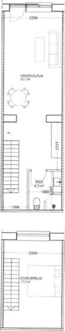 Stor 2 værelses lejlighed i to plan
