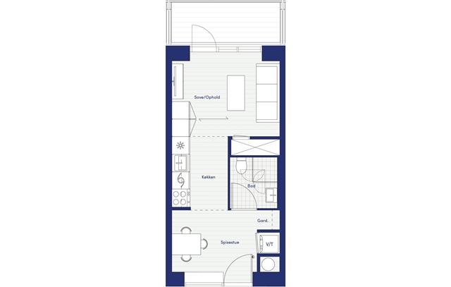 1 værelses lejlighed på 41 m2