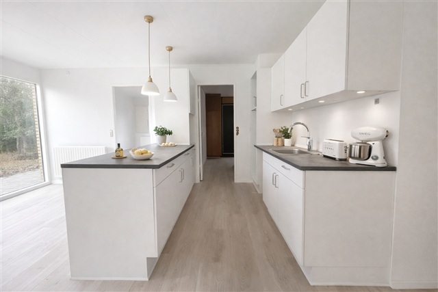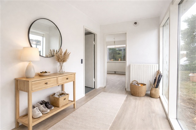 Derudover findes et praktisk bryggers, to badeværelser samt en mindre udestue, som ligger i forlængelse af alrummet. Haven udenfor er indbydende og aflukket, hvilket skaber optimale rammer for både afslapning og udendørs aktiviteter i privat regi. De tilhørende udhuse tilbyder ekstra opbevaringsmuligheder, samtidig med at de kan anvendes som værksted eller til hobbyformål.