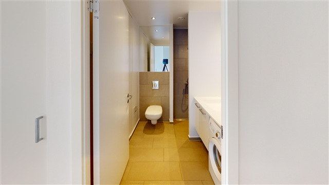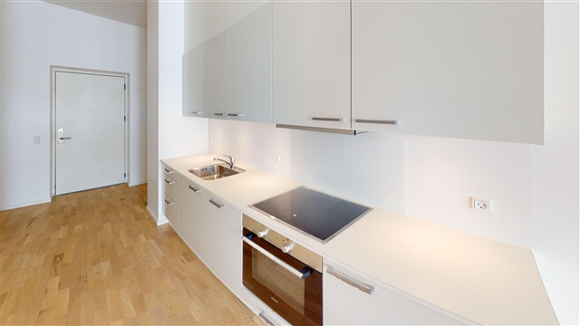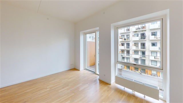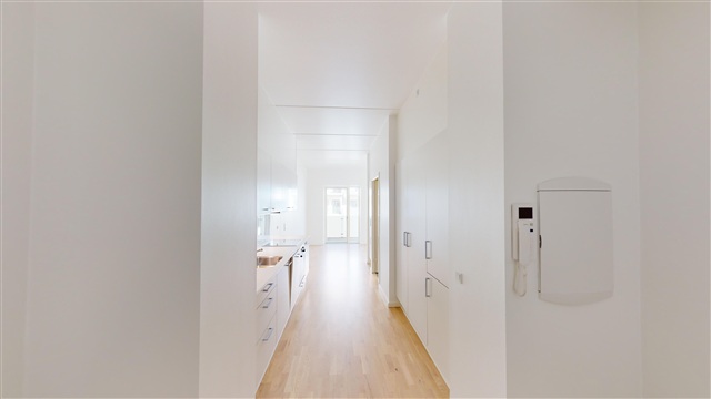 Indvendigt møder man et lyst og skandinavisk udtryk, hvor egeparketgulvene bidrager til en naturlig og varm atmosfære, samtidig med at de store vinduer sørger for optimalt lysindfald. Boligerne har ventilation og varmegenvinding, der sikrer et sundt indeklima. Køkkener og badeværelser er udstyret med elementer i tidløst design leveret af Invita, og de hårde hvidevarer er fra Siemens. Badeværelserne, udstyret med gulvvarme og slidstærke klinker, indeholder toilet, håndvask, bruseniche samt kombineret vaskemaskine og tørretumbler.