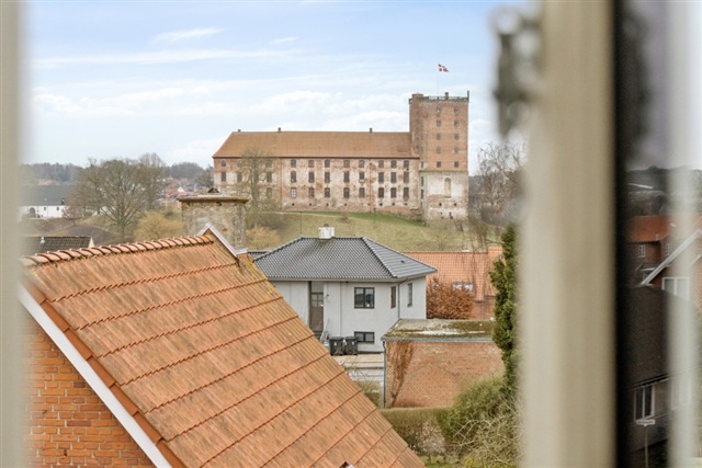 Lejligheden består af to værelser og udgør 54 m². Boligen rummer en stue med udsigt til Koldinghus samt et soveværelse, hvorfra der er udsyn til et nærliggende parkanlæg. Køkkenet og toilettet fremstår pænt. Badefaciliteter deles med nabolejligheden. Gulvene er afhøvlede og lakerede, mens termovinduerne er forsynet med energiglas.Ejendommen fremstår velholdt og byder på et fælles vaskerum, der er udstyret med vaskemaskine og tørretumbler. Der er desuden parkeringspladser foran bygningen samt et stort grønt område til fælles benyttelse. Det er muligt at installere egen vaskemaskine i det kælderbaserede vaskerum. Ejendommen er klassificeret med energimærke D.
