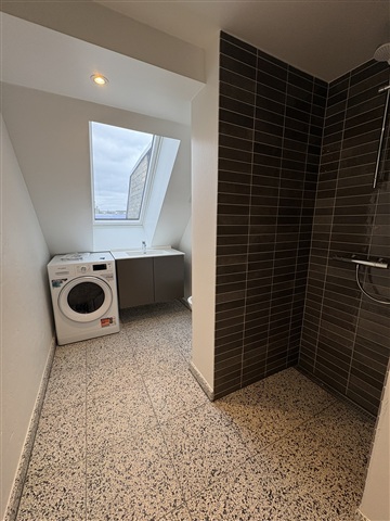 I hjertet af København, i den fredelige Stenosgade, findes denne nybyggede penthouselejlighed, der kombinerer moderne charme med en central beliggenhed mellem Planetariet og Vesterbrogade. Lejligheden præsenterer sig med lyse rum og et gennemtænkt delevenligt design, som inkluderer en fransk altan samt adgang til en privat tagterrasse. Herfra åbner der sig en flot udsigt over Søerne, Det Ny Teater og ikke mindst Tivoli.Lejligheden fremstår som en sjælden fusion af ro, naturligt lys og det pulserende bymiljø lige uden for hoveddøren. Boligen rummer et køkken i åben forbindelse med opholdsrummet, et badeværelse samt tre separate værelser. Fra stuen finder man trappen, der fører op til den private tagterrasse, som måler cirka 20 m2.