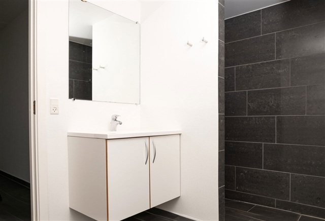 Alle køkkener er fra Invita og udstyret med LED-belysning. Inventaret inkluderer komfur, emhætte, køle-/fryseskab samt opvaskemaskine, og der er tilstrækkelig skabsplads til køkkenudstyr. Køkkenet er placeret i en åben forbindelse til en rummelig, lys stue med trægulve, hvorfra der er direkte udgang til altanen. Store vinduespartier sikrer et godt lysindfald i hele lejligheden. Badeværelset er af en god størrelse, belagt med fliser og har gulvvarme. Her findes også vaskemaskine, tørretumbler og LED-belysning. Alle værelser har trægulve og indbyggede skabe.
