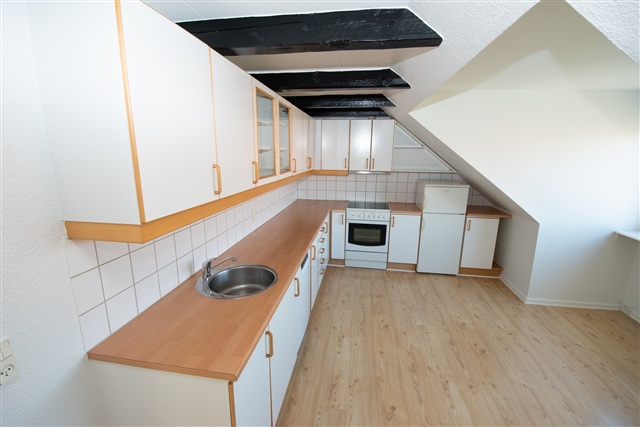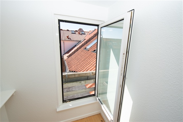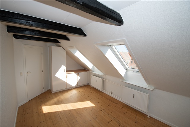 Denne taglejlighed kombinerer kvalitet og masser af naturligt lys med den særlige atmosfære, som Aalborg kan tilbyde. Boligen står klar til indflytning og emmer af en behagelig og hyggelig stemning, der inviterer til afslapning og samvær.Med sine tre rummelige værelser og et spisekøkken, der indbyder til fælles måltider, opfylder lejligheden mange behov. Foran boligindgangen er der en entré med trægulv, som giver adgang til samtlige rum. Spisekøkkenet er udstyret med veldesignede skabselementer og moderne hvidevarer, herunder opvaskemaskine, et køle-/fryseskab samt et glaskeramisk komfur. Her kan et spisebord til seks personer placeres foran et stort vindue med udsigt, hvilket skaber en lys og indbydende spiseplads. Badeværelset har en praktisk, afskærmet bruseniche, integrerede skabe, en kombineret vaskemaskine og tørretumbler samt indbyggede spotlys i loftet. Lejligheden er netop blevet nymalet og gennemrenoveret, hvilket sikrer en frisk og indbydende atmosfære.