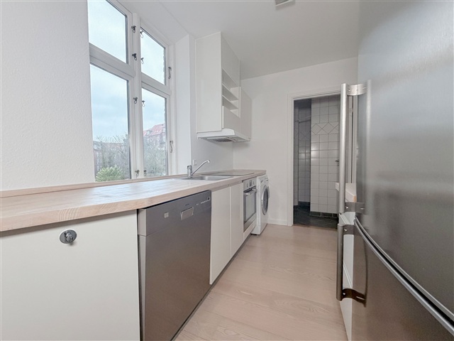 Denne lyse og moderne lejlighed byder på to værelser og en velgennemtænkt planløsning, som skaber rummelige og indbydende opholdsarealer. Boligen fremstår velholdt med flotte gulve og lyse, ensartede overflader, der sammen med de praktiske løsninger bidrager til en behagelig atmosfære. Køkkenet og badeværelset er stilfuldt udført i et tidløst design og er udstyret med moderne hvidevarer, hvilket gør dagligdagen både nem og komfortabel. Denne lejlighed er ideel for både singler og par.Med sin funktionelle indretning er det nemt at få adgang til alle boligens rum, som er placeret på en måde, der optimerer pladsen. Køkkenet byder på både opvaskemaskine og vaskemaskine, mens det rummelige badeværelse har en separat bruseniche. De lyse opholdsrum giver mange muligheder for møblering, og materialevalget er gennemført og harmonisk. Lejligheden har en central placering med nem adgang til indkøbsmuligheder og offentlig transport. Hvis denne bolig vækker din interesse, er du velkommen til at kontakte os for yderligere oplysninger eller for at aftale en fremvisning.