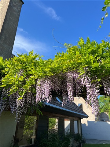 Beliggenheden kombinerer natur og byliv på en særlig måde. Villaen ligger tæt på Nordvests og Nørrebros livlige miljø, men samtidig i en fredelig atmosfære. Mod den ene side grænser ejendommen op til Bispebjerg Kirkegård med sine japanske kirsebærtræer, og mod den anden side til Utterslev Mose, hvilket giver en følelse af at bo midt i naturen, mens Københavns centrum kun er en kort tur væk. På cykel kan man nå centrum på 10 til 15 minutter, og de offentlige transportmuligheder med busserne 250S, 5C og Metro M3 gør også centrum nemt tilgængeligt.
