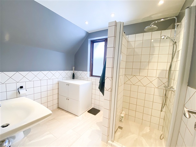 Træd indenfor i denne velholdte og gennemrenoverede villa, der breder sig over 172 kvadratmeter fordelt på to etager. Opholdsrumene er placeret i stueplan, mens førstesalen rummer boligens værelser. Ejendommen er placeret på en rolig villavej og har en overskuelig have på 445 kvadratmeter, som både indeholder græsplæne og flere velanlagte terrasser, hvor solen kan nydes hele dagen. Boligen udlejes i en periode på tre år med indflytning fra den 1. april 2026.Indretningen byder på en stor og rummelig entré med plads til opbevaring af overtøj, et funktionelt bryggers med vaskemaskine, et gæstetoilet samt et moderne køkken, der hænger sammen med spisestuen, hvor en pejs skaber en hyggelig stemning. Fra stuens område er der adgang til en skøn terrasse, som vender mod syd/sydvest og dermed sikrer dejligt sollys. På førstesalen findes et badeværelse med brus, to værelser af god størrelse samt et meget stort soveværelse med indbyggede skabe til opbevaring.