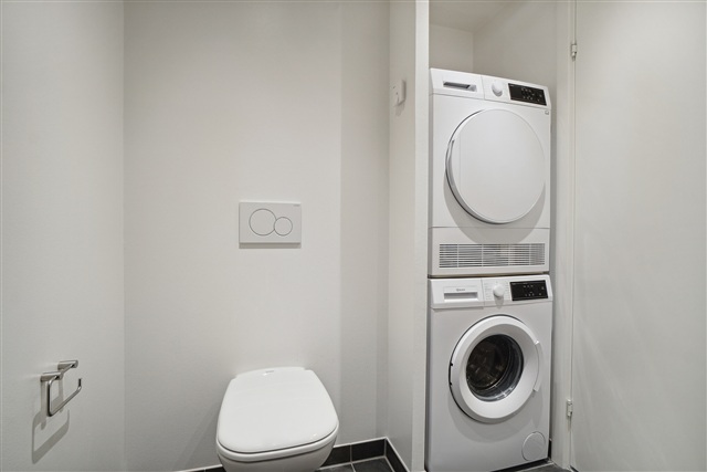 Lejligheden, der er indrettet med to værelser, ligger i høj stue og byder på et lyst samt rummeligt køkkenalrum, et værelse med god plads til soveområde samt en dejlig altan, der fungerer som et ekstra uderum. Den hævede placering sikrer et behageligt lysindfald i boligen og giver samtidig adgang til altanen.Køkkenet er udført i en moderne stil og indeholder blandt andet opvaskemaskine, køle-/fryseskab, keramisk kogeplade samt emhætte. Badeværelset fremstår ligeledes neutralt og er udstyret med både vaskemaskine og tørretumbler. Bemærk, at billederne stammer fra en tilsvarende lejlighed i samme ejendom.