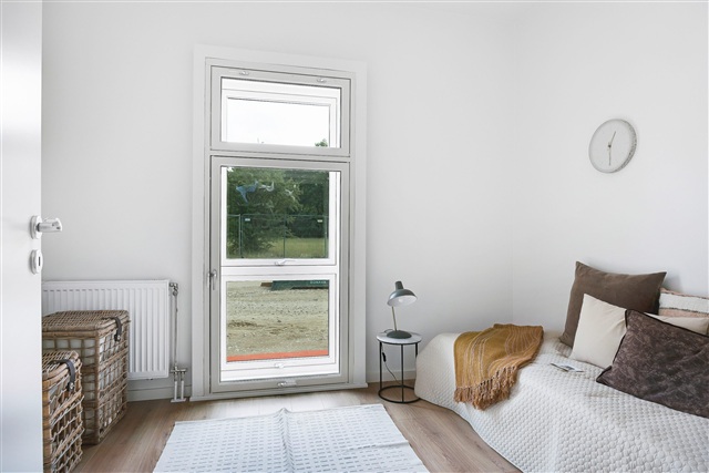 Lejligheden på 94 m², beliggende i stueplan, rummer et lyst og gennemgående køkken/alrum, som fungerer som hjemmets naturlige samlingssted. Her er rig mulighed for både dagligdags aktiviteter og afslappede stunder med familie og venner. Fra alrummet ledes man direkte ud på en indbydende terrasse, som er et oplagt sted at nyde solen på de varme dage.Inde i boligen findes tre rummelige og lyse værelser, der tilbyder gode pladsforhold og skaber rammer for både ro og privatliv. Denne lejlighed er en del af en nyopført ejendom, der er karakteriseret ved brede vinduespartier hele vejen rundt, hvilket sikrer et flot lysindfald og en let og luftig stemning i hele lejligheden. Entréen og badeværelset er udført med en stilfuld indretning, og badeværelset er desuden udstyret med en kombineret vaskemaskine og tørretumbler, der gør hverdagen nemmere.