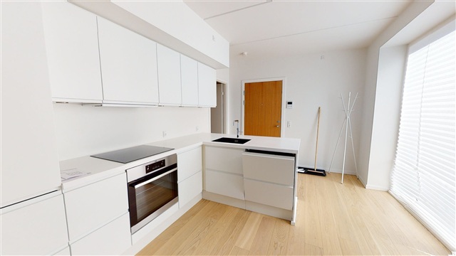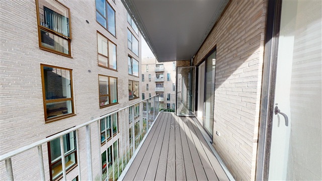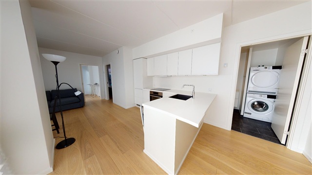 Boligen er placeret på anden sal og kendetegnes ved en særdeles god indstrømning af naturligt lys samt en velovervejet rumfordeling. Den store stue deler åbent rum med et tidssvarende køkken, der er udstyret med integrerede hvidevarer og rigelig opbevaringsplads i skabene. Det rolige og veludformede soveværelse har også god plads til opbevaring, mens det lyse og moderne badeværelse byder på en separat bruseniche samt faciliteter til vask.Nordhavn-området er populært på grund af sin særlige blanding af havnebad, spisesteder som caféer og restauranter samt indkøbsmuligheder - alt sammen ligger inden for gåafstand. Man har desuden let adgang til metroen, der effektivt forbinder til byens centrum. Denne lejlighed er ideel for både singler og par, som ønsker en moderne bolig i et tillokkende kvarter tæt på både vandet og bylivet.