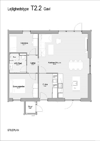 Nedenfor er angivet adresserne på tilsvarende boliger af typen T2.2, der er gavlhuse (endehuse), med tilhørende størrelser og huslejepriser: