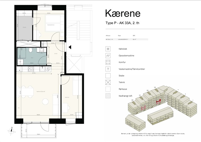 Lejlighederne er alle forsynet med enten altan eller terrasse og er indrettet med materialer af gennemført kvalitet. Der er generelt lagt vægt på at skabe rummelige opholdsrum, som er udstyret med Invitakøkkener i et moderne og enkelt design, egetræsgulve samt rigeligt dagslys gennem store vinduespartier. Gulvvarme er installeret i samtlige lejemål, også på badeværelserne, hvor der desuden findes energibesparende vaskemaskine og tørretumbler. Opbevaringsmuligheder er prioriteret med indbyggede skabe, og hver lejlighed har eksklusiv adgang til et depotrum tilhørende boligen. Disse veldesignede boliger i området er skabt med fokus på både funktionalitet og velvære, hvilket gør dem velegnede til et bekymringsfrit hverdagsliv. Boligerne er tilrettelagt, så de dækker behovene gennem alle livets stadier og er beliggende i rolige, naturskønne omgivelser.