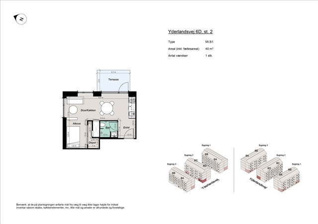 Inden for Områdets rammer findes 92 moderne minimalboliger, alle bestående af ét værelse og hver med sin egen private terrasse eller altan. Disse boliger er designet til dem, der ønsker et enkelt og bekvemt liv uden at ofre livskvalitet. Selvom boligerne er kompakte, er de gennemtænkte med fokus på gode lysforhold, moderne materialevalg og alt nødvendigt til en funktionel hverdag. Her er der ikke blot fokus på det individuelle hjem, men også på et stærkt fællesskab blandt beboerne. Fællesområderne er attraktive og indbyder til socialt samvær både indendørs og udendørs, hvor uformelle snakke og spontane møder kan finde sted. Tilgængelige faciliteter omfatter blandt andet et fælles bytterum, hvor man kan give gamle ting nyt liv, et fællesrum med køkken til sociale aktiviteter samt fælles vaskefaciliteter, som skaber et behageligt sted til samtaler, mens vaskemaskinerne kører. Disse omgivelser understøtter udviklingen af venskaber og gør hverdagen mere fornøjelig. Minimalboligerne er særligt velegnede for studerende, unge og andre, der ønsker et aktivt byliv kombineret med både privatliv og socialt nærmiljø lige ved døren.