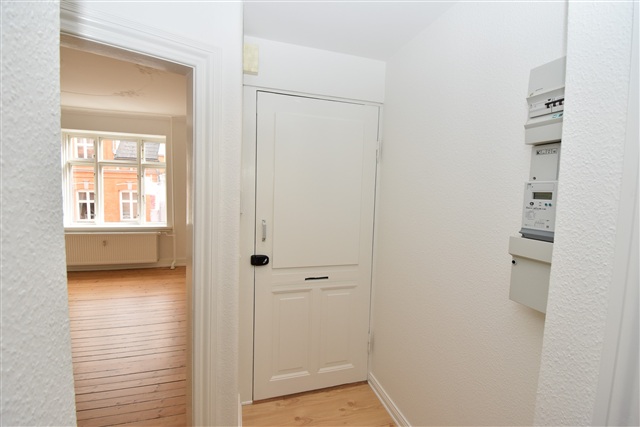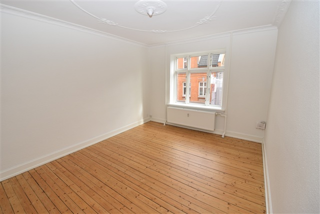 Denne lejlighed, beliggende centralt i Aalborg, kombinerer en lys og imødekommende stemning med byens livlige atmosfære. Boligen står klar til indflytning og byder på en behagelig ramme for hverdagen.Indenfor mødes man af en rummelig og lys entré, der fører videre til et moderne køkken, hvor kvaliteten mærkes i materialevalget. Køkkenet er udstyret med hvide fronter, der flankeres af mahognikant og stålgreb. Alle nødvendige hårde hvidevarer er til stede, herunder en opvaskemaskine i rustfrit stål samt et glaskeramisk komfur. Stuen imponerende med et dekorativt stukloft, som tilfører elegance, mens det store soveværelse nemt rummer både arbejdsplads og opbevaring i form af skabe. Badeværelset fremstår stilrent, prydet af moderne fliser, gulvvarme og en rummelig bruseniche, der skaber en indbydende og komfortabel atmosfære.