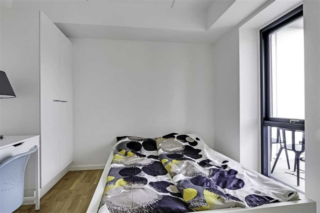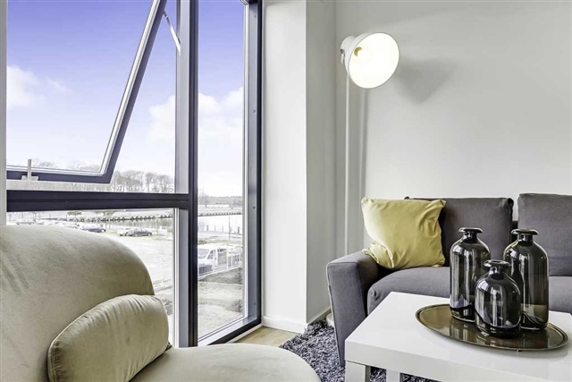 Denne 46 m² store lejlighed finder man i Promenadebyen ved Odense Havne kanal, med kort afstand til både havnebadet, Banegården og Odense centrum. Boligen rummer et rummeligt og lyst værelse samt et åbent køkken-alrum, et badeværelse med brus, og en terrasse med udsigt over både skovområde og havn.Lejligheden er præget af et lyst og indbydende miljø, hvor køkkenet er udstyret med hvide skabe og indeholder integreret ovn, kogeplader samt et køleskab med fryser. Derudover er der installeret opvaskemaskine, og køkkenet er praktisk placeret i forbindelse med stuen, som har trægulve og store vinduer, der giver et dejligt lysindfald og samtidig byder på en panoramaudsigt mod både skov og vand. Fra stuen er der adgang til altanen, som ligeledes har udsigt til de naturskønne omgivelser. Det dejlige værelse er indrettet med skabsplads og et gulv-til-loft vindue, der skaber et lyst og venligt rum. En skydevæg adskiller værelset og stuen, hvilket sikrer, at dagslyset kan brede sig gennem hele lejligheden. Badeværelset er stort og praktisk, og her findes også en vaskemaskine og tørretumbler.