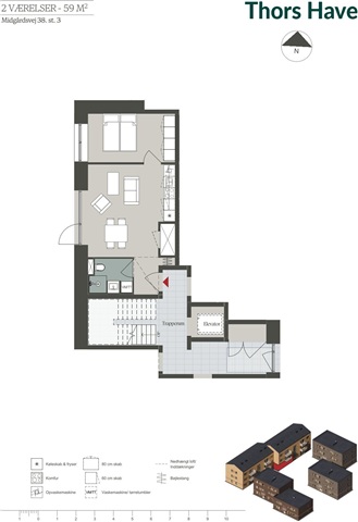Vær opmærksom på, at billederne stammer fra en prøvebolig, og at udsigt samt indretning derfor ikke nødvendigvis afspejler den konkrete bolig. Plantegningen derimod viser præcis den pågældende lejlighed. Derudover er parkering gratis og har ladestanderfaciliteter.