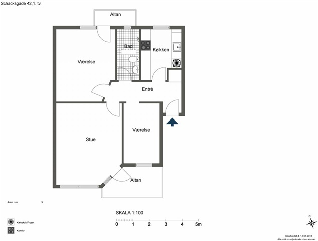 Det skal bemærkes, at billederne kan stamme fra en anden bolig i ejendommen, og derfor kan indretningen, beliggenheden samt udsigten variere. For at få et korrekt indtryk af denne lejligheds planløsning henvises til vedlagte plantegning.