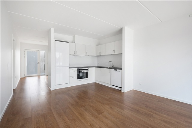 Lejlighederne er forsynet med store, flotte vinduespartier, hvilket skaber indbydende rum med et godt lysindfald. Alle lejlighederne er indrettet i et materialevalg fra øverste hylde med hvide køkken- og badeværelseselementer fra Invita og følger den nordiske stil med hvidmalede vægge og lyse trægulve, som gør, at du nemt kan skabe et hjem med din egen personlige stil.