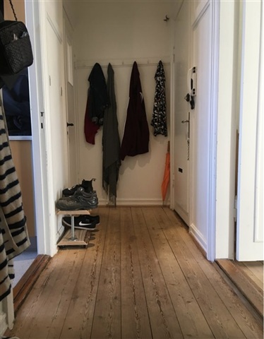 Meget centralt beliggendeGod entre med skab og god garderobe plads