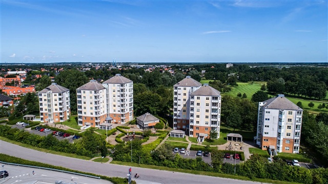 Denne lejlighed byder på rolige omgivelser tæt på naturen og tilbyder samtidig stor komfort. Boligen er lys og rummelig og ligger i umiddelbar nærhed af en golfbane, hvilket skaber en fredelig atmosfære.Indretningen består af en vinkelstue med adgang til en altan, der vender mod syd, hvilket sikrer gode lysforhold. Køkkenet har en glasakarnap og er indrettet med plads til opvaskemaskine. Herudover findes to værelser, begge udstyret med indbyggede skabe, et badeværelse med bruseniche samt plads til vaskesøjle. Entréen er særdeles rummelig og har skabsplads til opbevaring.