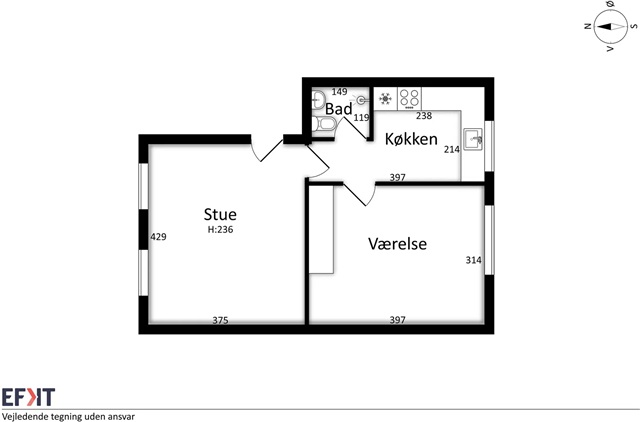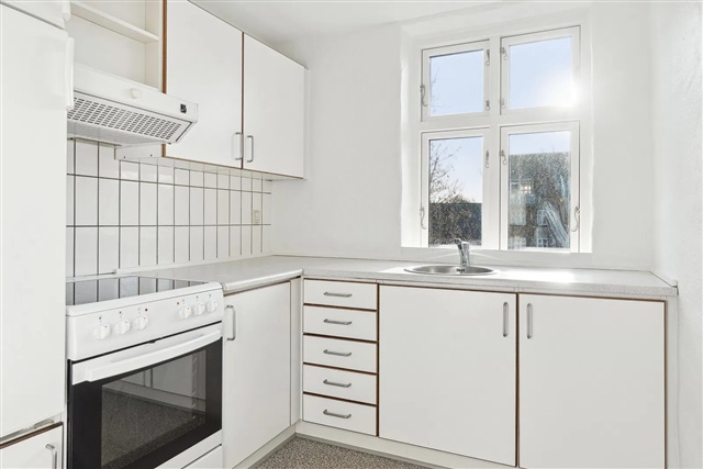 Denne 2-værelses lejlighed kombinerer et rigt lysindfald med en central placering og er klar til indflytning. Boligens atmosfære fremstår indbydende og behagelig.Indretningen omfatter en praktisk planløsning, hvor den store stue drager fordel af flere vinduer, der lukker dagslyset ind. Her er der rigelig plads til både sofaarrangement og spisebord, hvilket giver gode muligheder for både afslapning og samvær. Det lyse soveværelse er nemt at indrette og indeholder faste skabe, der sikrer effektiv opbevaringsplads. Det separate køkken fremstår i klassisk hvidt og byder på tilstrækkelig bord- og skabsplads samt alle nødvendige hårde hvidevarer som køle/fryseskab, komfur og emhætte. Badeværelset er kompakt, men funktionelt, med vægfliser og brusezone, der let kan holdes ren.