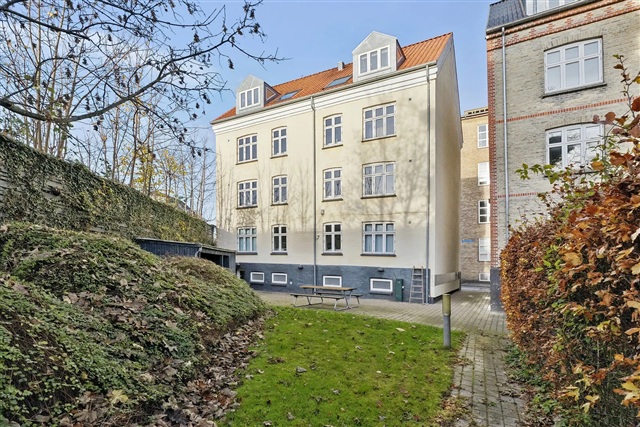 Ejendommen rummer et fælles gårdmiljø med grønne områder og siddepladser, der skaber en behagelig mulighed for ophold og afslapning. Yderligere faciliteter inkluderer et kældervaskeri, et depotrum til lejemålet, fælles antenneinstallation samt porttelefon, som bidrager til sikkerhed og adgangskontrol.